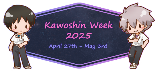 Hello and welcome to Kawoshin Week!This is a fan week dedicated to celebrating the relationship between Shinji Ikari and Kaworu Nagisa from Neon Genesis Evangelion and creating fanworks centered around them. It will run for seven days, from April 27th to May 3rd (Kawoshin Day), with a list of daily prompts to serve as inspiration!To participate, post your work on the day of the theme you're following once the week starts. Make sure to use the tag #kawoshinweek2025 and tag us so we can share it! All sorts of fanworks are welcome - fanart, fanfiction, edits, and so on - , and you can participate in as many days as you're able to.This event is run by Tomaturtles!